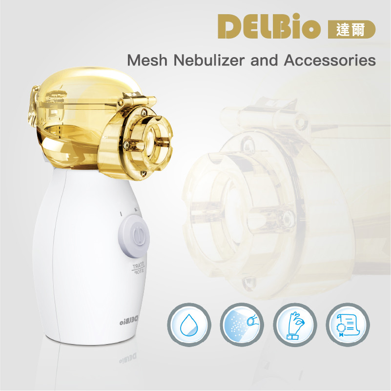 DELBio medical mesh nebulizer can be used for small medical atomized hand-held nebulizers of all ages. It is suitable for patients with asthma and chronic respiratory diseases. It is lightweight and convenient for home care assistance. Using the latest technology of nickel-palladium alloy mesh technology, high atomization rate, can use a variety of inhalation dosage forms of liquid medicine, approaching zero drug residue. Nickel-palladium alloy chemical resistant agent is corroded by acid and alkali, and has a long service life. The high-tech mesh production technology precisely controls the apparent inhalation performance of each mesh and the high fineness of the atomized particles to achieve auxiliary treatment.